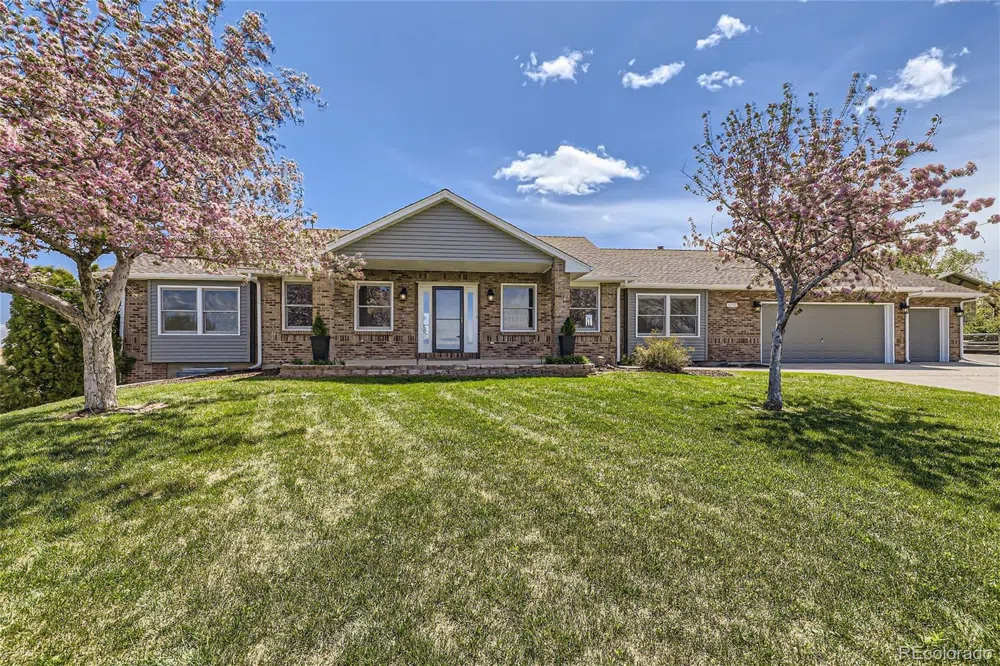 Beautiful updated walk-out ranch on huge 2.74 acre lot (zoned A-1/agricultural) in Columbine Ranches with large barn/outbuilding. Homes in Columbine Ranches rarely come available for sale. One of the best and most private lots in Columbine Ranches on cul-de sac. This updated ranch with walk-out basement offers an updated kitchen with new cabinets, island with plenty of cabinet storage, granite countertops, stainless single bowl sink, tile backsplash & new stainless steel appliances including a double oven range. Large dining room & huge closet style panty with barn doors. Excellent living room with tall ceilings & gas fireplace. New septic tanks installed Feb. 2025. New 50 gallon water heater installed May 2024. Large oversized drywalled 3 car attached garage + a huge 1470 square ft outbuilding/barn (new in 2020) with oversized garage doors for RV/camper storage. Main floor primary bedroom features a walk-in closet and updated 5 piece ensuite primary bath with jetted tub. Two laundry room options (main level & basement). Also new interior & exterior paint. New carpet. New luxury vinyl plank flooring. Huge exterior composite deck off the main floor with beautiful views. Large driveway with tons of room for additional parking. HOA provides community well for irrigation water. Private well on property for household use. A-1 zoning. Schedule your private showing today. Buyer to verify square footage.