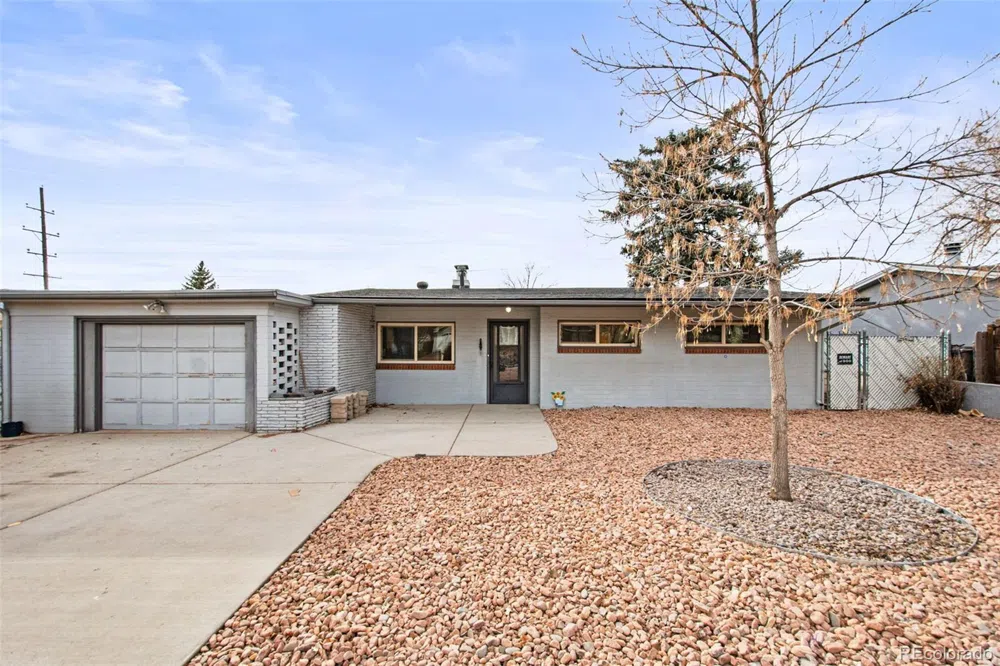 Welcome to this bright and inviting ranch-style home nestled in the desirable Meadow Ridge neighborhood! This cozy, well-maintained home offers comfortable living with many recent upgrades, including fresh paint, new flooring, and plush carpet. The spacious living room features a built-in wood-burning fireplace, perfect for chilly Colorado evenings. Enjoy stunning Pikes Peak views from the large back patio, with no neighbors behind for added privacy. The beautifully xerscaped front yard offers curb appeal with low-maintenance landscaping, while the oversized one-car attached garage includes a built-in workbench for all your projects. The expansive driveway provides ample space for RV parking. The backyard is an outdoor oasis, complete with a storage shed to make up for the lack of a basement. Conveniently located near local colleges, parks, and amenities, this home is move-in ready and waiting for you. Don't miss your chance to own this charming retreat!
