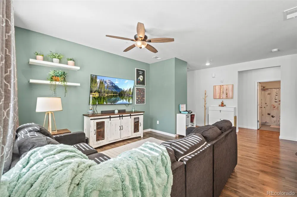 Bright & Beautifully Upgraded Condo in Copeland Canyons – Highlands Ranch Step into this stunning 2-bedroom, 2-bathroom condo in the desirable Copeland Canyons community. Built in 2018 and meticulously maintained by its original owner, this first-floor unit is filled with natural light, creating a warm and inviting atmosphere. The open-concept living space is perfect for both relaxing and entertaining, featuring a formal dining area and additional seating at the spacious kitchen island. The bright and airy kitchen offers 42" soft-close cabinets, abundant storage, stainless steel appliances, and a gas range, making it a dream for any home chef. Upgraded lighting, stylish ceiling fans, and custom professional paint enhance the home’s modern feel. The spacious primary suite includes a private en-suite bath, while the second bedroom is ideal for guests or a home office. Both bathrooms feature elegant finishes and plenty of storage. Enjoy the convenience of a programmable front door lock, video doorbell, and added interior storage. The secure complex offers nighttime security gates, a clubhouse, pool, and playground. This home also includes reserved parking, with plenty of guest parking available. All of this in a prime location near dining, trails, and highway access. This move-in-ready home combines comfort, style, and convenience—don’t miss your chance to make it yours!